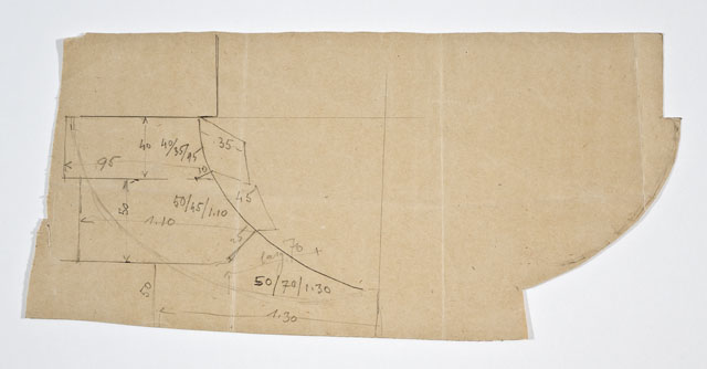 Disegno quotato di particolare architettonico: profilo concavo; foglio sagomato.