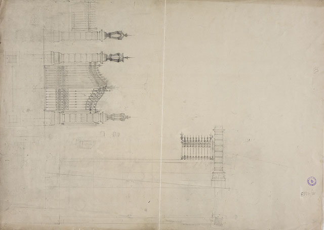 Il disegno in esame appartiene al "Progetto per l'edificio della Riunione Adriatica di Sicurtà", cfr. schede CMSAOAR10_4176-CMSAOAR10_4206. Agli inizi del Novecento il direttore generale della Riunione Adriatica di Sicurtà, Adolfo de Frigyessy, e suo figlio Arnoldo, decisero di realizzare una nuova sede di rappresentanza per la compagnia a Trieste. Acquistato un ampio lotto già edificato tra la piazza Nuova e le vie S. Caterina, S. Antonio e il Corso, e demolite le precedenti costruzioni, indissero nel luglio 1909 un concorso internazionale a inviti per la progettazione di un nuovo palazzo. Oltre a Ruggero e Arduino Berlam, vi parteciparono gli architetti Ignác Alpar, Ludwig Baumann, Max Littmann, Luigi Broggi, Giacomo Zamattio, Giorgio Zaninovich, Enrico Nordio e Ludovico Braidotti. Nel bando si richiedeva che il palazzo contenesse un semi-sotterraneo, un piano elevato, un ammezzato, tre piani superiori più un sottotetto; ma non si davano indicazioni sulla distribuzione interna degli ambienti e su requisiti tecnologici. Nel novembre 1909 la giuria selezionò, tra i progetti pervenuti, quelli di Alpar, Zammattio e dei Berlam (Lettis in Rovello 2007, p. 312) per la seconda fase del concorso. Tuttavia Zammattio e Alpar non si presentarono, cosicché lo studio Berlam, unico rimasto fra i selezionati, ricevette l’incarico. Seguì una fase in cui Ruggero e Arduino Berlam vennero costantemente seguiti dalla committenza nell’elaborazione dell’assetto generale e di ogni minuto dettaglio dell’edificio. La direzione della compagnia assicurativa voleva che lo stabile fosse destinato per metà a sede della società, cioè verso la Piazza Nuova (odierna Piazza della Repubblica); mentre il lato opposto, verso il Corso, fosse adibito a negozi, al pianterreno, e abitazioni. Anche il piano prospiciente la via S. Antonio (attuale via Dante) era riservato agli esercizi commerciali. Il progetto definitivo dei Berlam, datato 2 dicembre 1910, venne approvato dal Magistrato civico il 12 gennaio 1911; il permesso di fabbrica è del 28 giugno 1911. L’Impresa Carlo Bonetti costruì il palazzo, che fu inaugurato il 7 aprile 1914. Si tratta di un capolavoro del tardo eclettismo europeo, in cui si recuperano gli stilemi della tradizione architettonica del tardo Cinquecento. Nel palazzo, articolato in cinque piani, gli architetti si sono rifatti all’architettura “di facciata, ai palazzi italiani del secolo XVI” (Berlam cit. in Lettis in Rovello 2007, p. 313, nota 9). Quanto al disegno in esame, esso illustra, al recto, il prospetto laterale dell'edificio prospiciente la via Santa Caterina. Mostra affinità compositive con i disegni CMSAOAR10_4202, dedicato all'affaccio su via Sant'Antonio (attuale via Dante), e con CMSAOAR10_4196, relativo alla facciata principale. Come messo in luce dalla critica, tra queste facciate vi è una continuità di soluzioni formali, che contribuisce all’unitarietà tra le due metà dell’edificio, ossia alla parte destinata a sede sociale e a quella da destinare a locazione commerciale. Un altro disegno progettuale per la facciata su via Santa Caterina si conserva presso l'Archivio storico Allianz-Ras (cfr. Madotto 2008, p. 96). Il disegno sul verso è da riferirsi alla progettazione del cancello per la villa Lazarovich-Vianello di via Tigor 23, la cui esecuzione si data al 1911 (Pozzetto 1999, p. 246).