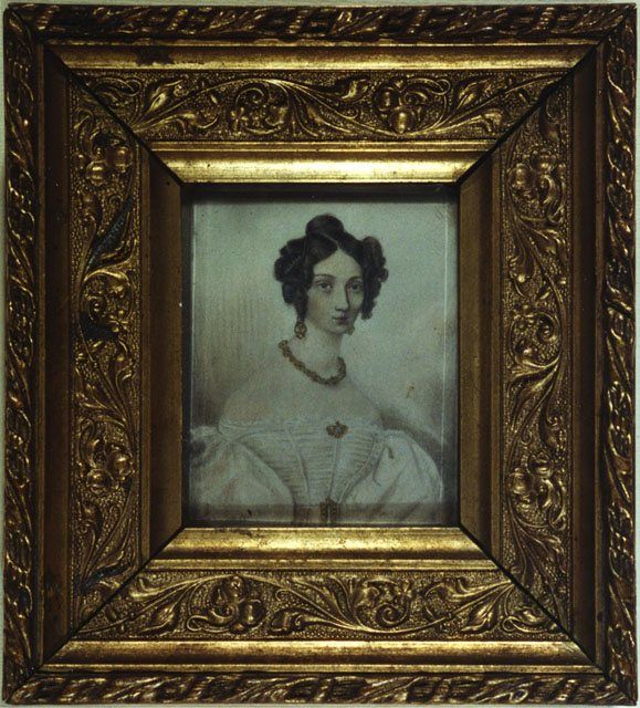 Il ritratto in miniatura è giunto alle collezioni civiche triestine nel 1936, con il legato Emilia Zamboni, insieme al suo pendant, il ritratto di Antonio Zamboni (CMSA inv. 13/2309). Nell’inventario è censito come ritratto di Luisa Zamboni da giovane sposa. Luisa (o Luigia), nata Amadio, napoletana d’origine, sposò Antonio Zamboni attorno al 1825 e dalla loro unione nacque Filippo Zamboni (1826-1910). Dell’effigiata presso i Civici Musei di Storia ed Arte si conserva un ritratto di ambito viennese, eseguito prima delle sue nozze (inv. 13/2852) e uno dipinto a Roma da mons. Alessandro Zamboni, pittore dilettante (inv. 13/2794), oltre a dei ritratti fotografici con il figlio eseguiti da Vittorio della Rovere (inv. F028593) e a Vienna da Josef Lowy (inv. F014974).