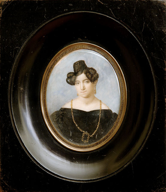 Pervenuta nelle collezioni civiche nel 1932, la miniatura raffigura Regina Parente (Trieste, 1783-?), sorella Aron Isache e moglie di Isacco Morpurgo (cfr. Messina in Messina, Volpato 2014-2017). L’abbigliamento e l’acconciatura sembrano suggerire una datazione agli anni trenta del XIX secolo. Per un confronto si rinvia alla miniatura pubblicata in L'assicuratore Giuseppe de Morpurgo 1998, p. 10).