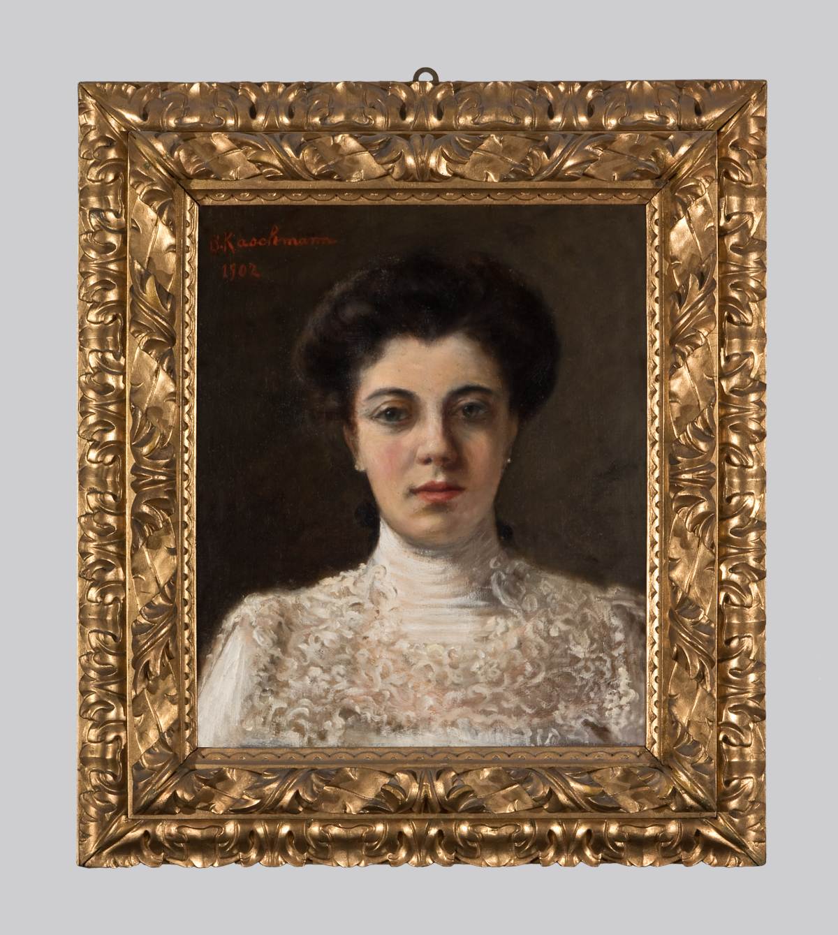 Il dipinto venne realizzato nel 1902 da Bianca Kaschmann che in questo ritratto raffigura la madre, Emma Vicentini, cantante triestina che, nel 1883, a Napoli sposa il celebre baritono Giuseppe Kaschmann