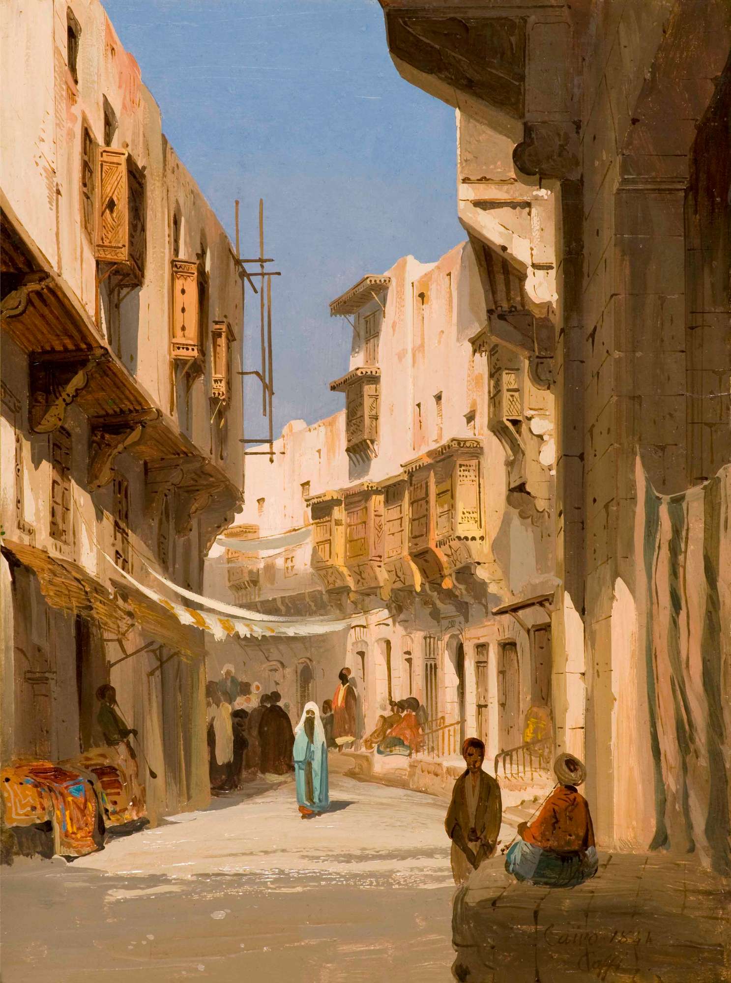 Fra il 1843 ed il 1844 Ippolito Caffi intraprese un viaggio che si snodò dalla Grecia al Medio Oriente fino all'Egitto. Forse il tour del Caffi è da collegarsi a quell'interesse per l'Oriente, manifestatosi in quegli anni, che ci viene testimoniato dai numerosi resoconti, sui giornali dell'epoca, e dalle pubblicazioni dedicate a quei luoghi esotici. Pur non conoscendo le precise motivaziani che spinsero il Caffi ad intraprendere il viaggio è possibile intuirle per analogia con altri artisti a lui contemporanei. Il viaggio in Oriente divenne allora una sorta di "grand tour" per pittori; tappa obbligatoria per un'esperienza forse più estetica che artistica. Dal punto di vista della suggestione artistica è probabilmente Horace Vernet il suo riferimento principale come verrebbe attestato dal fatto che alcuni acquarelli del Caffi riprendevano motivi tratti dai suoi quadri (cfr. F. Scotton, Ippolito Caffi - Viaggio in Oriente 1843 - 44, cat. mostra, Mestre 3 Luglio-15 settembre 1988, Venezia 1988, pp. 14, 70-77). Pittore orientalista, attivo a Roma proprio negli stessi anni del Caffi, Vernet è non solo fra i primi artisti a recarsi in Algeria ma svolse, tre anni prima, un viaggio analogo a quello del Caffi, tra Siria, Egitto e Palestina. Tuttavia, al tipo di produzione più oleografica del pittore francese, Caffi preferì una pittura che assomigliasse piuttosto ad un diario di viaggio, fatto di disegni, schizzi e piccole tele (G. Romanelli, L'Oriente di Caffi, in F. Scotton,1988, p.11) analoghe a quella presente al Civico Museo Revoltella. Il dipinto, datato 1844, rappresenta una strada del Cairo ed è realizzato con la medesima tecnica pittorica ed offre lo stesso taglio verticale della scena riscontrabili nel "Caffé al Cairo" e nel "Cairo, strada principale" conservati alla Galleria d'Arte Moderna, Ca' Pesaro di Venezia (cfr. F. Scotton,1988, pp.49-50, cat. nn. 30-31). Va rilevato che Caffi ebbe modo di studiare attentamente questi scorci urbani durante la sua lunga permanenza al Cairo, città che, alla metà dell'800, non poteva non esercitare sui pittori un forte fascino nella sua caleidoscopica varietà umana: turchi ottomani, donne circasse, fellahin egiziani, greci, giovani schiave georgiane e abissine, persiani, nubiani, membri di diverse chiese orientali quali copti ebrei e musulmani (B. Llewellyn, Lewis l'Egiziano, in "FMR", n. 23, maggio 1984, p. 154). Nei vicoli ombrosi della città Caffi trova spunto per le sue scenografie prospettiche che accolgono la gente comune, le diverse professioni di scribi, mercanti dragomanni e schiavi, tutti ritratti con rapidi tocchi di pennello che contrastano con la precisione "canalettiana" riservata alla rappresentazione architettonica, delineata marcando, con tratti sottili di pennello, le direttici prospettiche dei masselli di pietra degli edifici. Come sottolineato dalla Cruvar, Caffi, di ritorno dall'Oriente, pervase con i suoi dipinti di atmosfere esotiche le sale degli ambienti triestini e veneti. Lo confermerebbe la presenze di queste opere nelle collezioni di Pietro Sartorio, Leone Hierschel, Carlo Ottavio Fontana, Elio e Marco de Morpurgo (Crusvar, 1990, p. 218).
