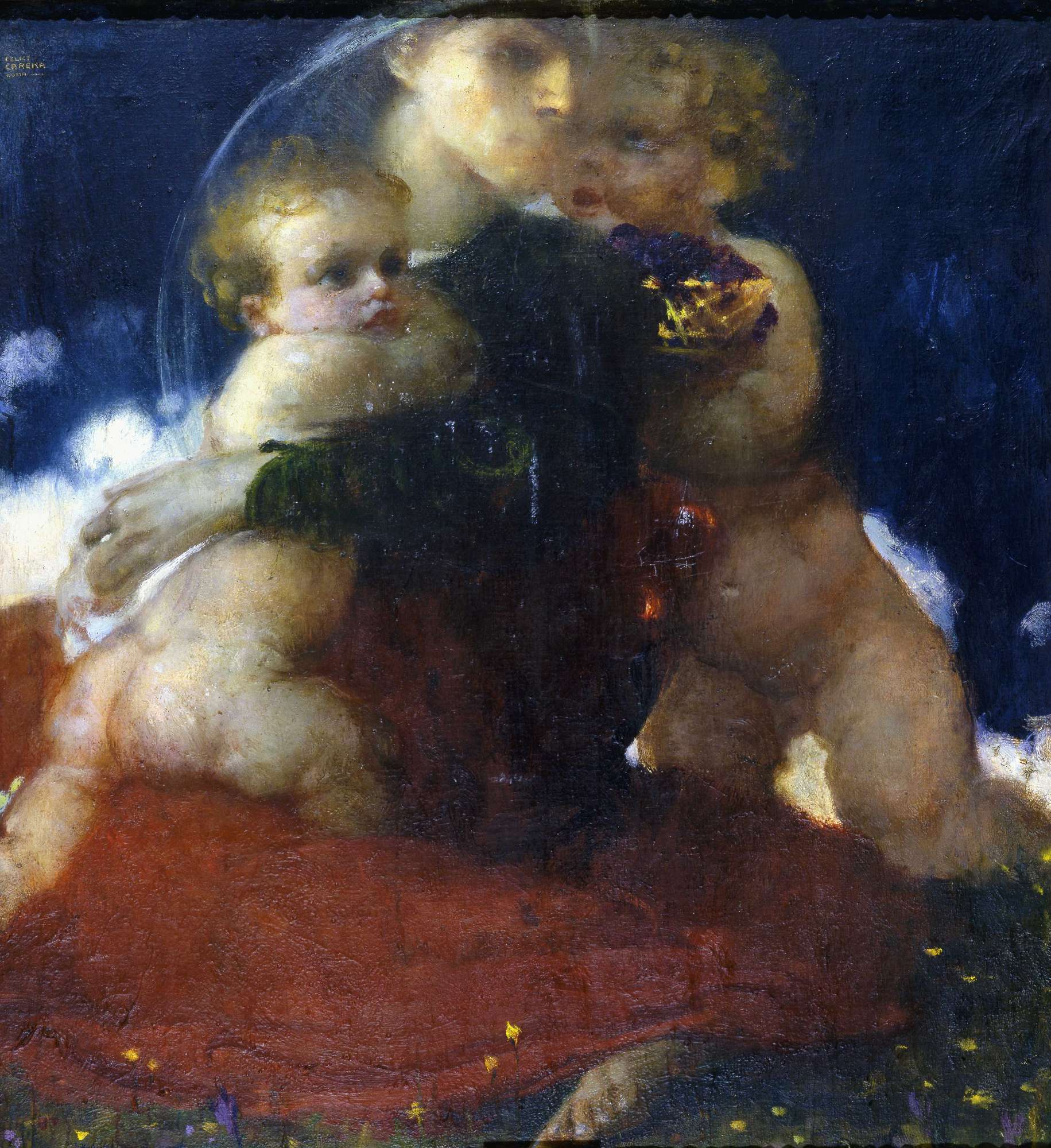 Madonna rientra nella serie di 21 opere presentate da Carena alla Biennale del 1912 (ma Perocco sottolinea come in realtà ve ne fossero 22: un Autoritratto fu aggiunto più tardi; Perocco, 1974, p.8). La personale, organizzata anche grazie all'interessamento di Augusto Ferrero, raccoglieva i lavori realizzati dall'artista negli ultimi tempi, quando si trovava a Roma dopo aver vinto il Pensionato nazionale, nel 1906, con il quadro La rivolta. Ferrero scrisse a Fradeletto il 24 ottobe 1910: “Ecco intanto che ti vengo a chiedere: Vorresti, per il 1912, dare una parete a Carena? Una parete non una sala. Egli non intende partecipare alla Mostra romana del 1911: e, invece, vorrebbe affermarsi degnamente a Venezia dove ebbe le prime e maggiori soddisfazioni” (Archivio Storico Arti Contemporanee, Fondo storico, SN busta n.37, fasc.5, Carena Felice, p.5). L'attenzione destata alla Biennale del 1909, allorché Carena espose due dipinti – una Vittoria, molto apprezzata da Pica, e i Viandanti, poi acquistati dalla Galleria Marangoni di Udine – e l'interesse suscitato da Roma, nel 1910, dai suoi studiati cromatismi, non gli risparmiarono in occasione della personale veneziana qualche nota critica. Damerini vide in Carena “giovane pieno di promesse ma dalla ispirazione ancora diseguale, incerta sulle orme di maestri dissimili tra loro come ad esempio Eugène Carrière e Franz Stuck (Damerini, 1912), altri sottolinearono un certo “abuso della mobilezza” (Sandro, 1912). Tra la serie di bimbi dai “capelli rossicci” (alcune erano immagini della figlia Marzia), e i ritratti della baronessa Ferrero e del fratello del pittore, vi era un paio di oli aventi per tema la maternità. Le due tele andarono vendute: Madre venne acquistata dalla Galleria Nazionale d'Arte Moderna di Roma, mentre Madonna, confluì nelle collezioni del Museo Rivoltella. E se la prima fu un'opera apprezzata per il sapiente digradare dei toni grigi, il dipinto del Rivoltella venne descritto da Ometti come un “quadro fastosamente decorativo [..ove] il volto malinconico e sfumato della madre resta solo a soffrire sopra una festa di rossi, di verdi, di viola, contro un cielo turchino” (Oyetti, La decima Esposizione d'Arte a Venezia, Bergamo, Istituto Italiano di Arti Grafiche, 1912, p.19). La rassegna indubbiamente venne a collocarsi in un periodo di grande ricerca e maturazione stilistica di Carena, il quale ancor giovane e dopo gli esordi accademici con Giacomo Grosso, si era volto a tematiche di tipo simbolista – anche grazie ai contatti col Bistolfi con lo scrittore Arturo Graf – e intimista, con una predilezione per soggetti “improntati a tenerezza di sentimenti e malinconia” (Perocco, 1979). In questo percorso l'artista guardò a Böcklin e ai moderni spagnoli, ma fondamentale fu soprattutto l'influenza del Carrière, dal quale il Carena mutuò la vaporosità del tocco, arricchendola, personalmente, con scelte cromatiche più accese laddove il maestro francese preferiva le penombre. Ometti, infatti, nonostante alcune perplessità, non esitò a ritrovare nel pittore le doti del grande “sinfonista. I colori sia a olio che a pastello egli li raggruppa, li vela, li fonde, li impone, li richiama a distanza con echi impensati e tenerissimi” (Ojetti, 1912, p.19). Nacquero così i “ritratti dall'intenso contenuto psicologico; scene familiari; delicata interpretazione della maternità e dell'infanzia: amoroso, fraterno senso di umanità; poetici fantasmi, e pura e schietta visione del vero” (Ferrero, 1912), della Biennale del 1912.