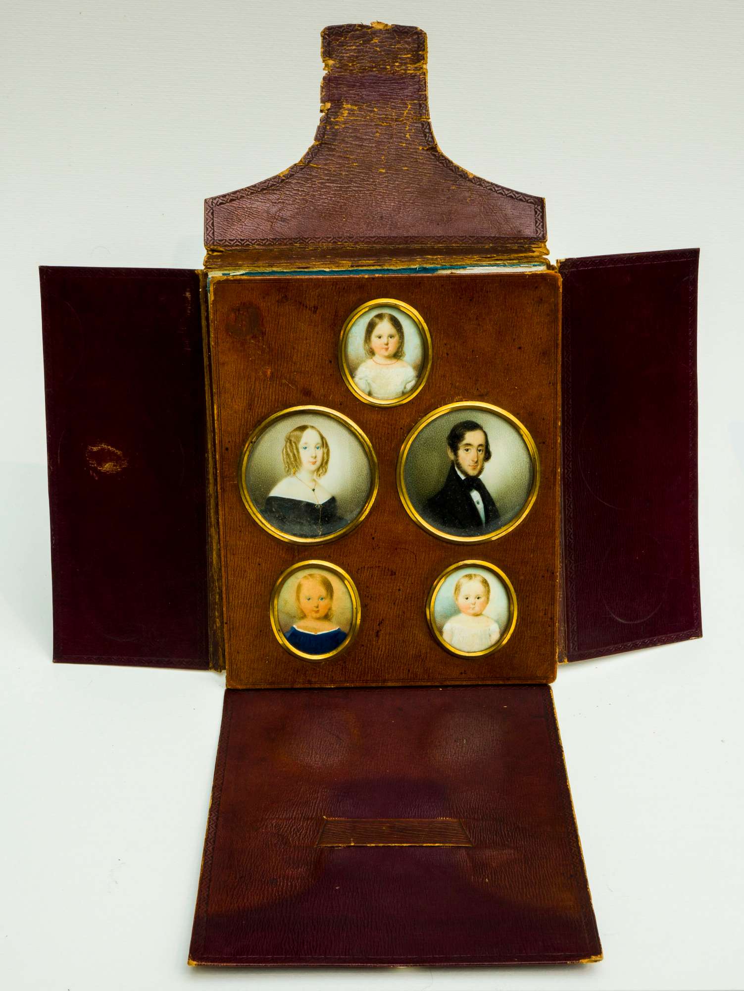 Miniatura di formato circolare appartenente a una serie di cinque che ritraggono la famiglia dell’imprenditore Carlo Antonio Fontana (Trieste,1809-1886) e di Adele Reisden (Trieste, 1814-1875). In particolare, l’opera ritrae Adele Reisden, figlia di Federico Giuseppe (1785-1863), vestita di abito nero dal profondo scollo che fa risaltare i monili dorati. Per la datazione dell'opera, si rinvia alle considerazioni alla scheda inv. 18184. Di Adele Reisden sono noti un ritratto in miniatura firmato da Andrea de Castro (Trieste, Civici Musei di Storia ed Arte, inv. 18192), databile per l’abito e l’acconciatura ai primi anni trenta dell’Ottocento; un ritratto, di poco successivo, già attribuito a Natale Schiavoni (CMSA inv. 18047), un acquerello di Franz Eybl (ivi, inv. 18028). Si conserva inoltre un dagherrotipo, che la ritrae di profilo, eseguito dal marito, dilettante in fotografia, nel 1842. Più tardo è il disegno, firmato Martinovich (inv. 18183).