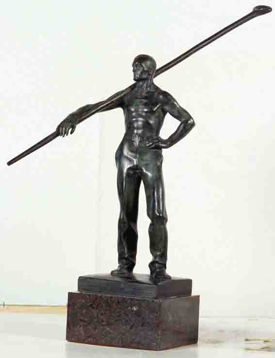 Le due statuette fanno parte del gruppo Quattro lavoratori del ferro e del fuoco che riunisce figure maschili erette recanti strumenti utilizzati nelle fonderie. Furono acquistate nel 1938 quando l’artista viveva a Trieste, dove nel 1919, aveva trovato un posto di insegnante dopo avere lasciato Vienna chiudendo una brillante carriera iniziata nell’ambito della Secessione. Il gruppo fu replicato e utilizzato dall'artista per elaborare diverse composizioni, anche di carattere funerario. Fin dagli esordi Canciani aveva dimostrato un vivo interesse per la poetica del lavoro e già nel 1890, durante gli studi accademici a Vienna, aveva ottenuto un premio per l'opera Alla sera (lavoratore stanco). Il tema – dopo un lungo periodo dedicato all'impresa del Dante, il monumentale gruppo in gesso esposto alla Biennale del 1899 – era stato ripreso nel 1902 con alcune figure (Marinaio, Fabbro, Lavoratore stanco con mazza, Il battimazza) ora disperse, molto simili a quelle realizzate nel 1907 per il gruppo dei Quattro lavoratori. Come osserva la Da Nova, «Canciani mostra di aver trovato congeniale la poetica di idealizzazione monumentale dei lavoratori che era dello scultore belga Meunier [...], ponendola in atto scevra da populismi e da cadute nel verismo bozzettistico, ma non nel pittoricismo rodiniano del belga bensì nel classicismo formale di tradizione accademica che era suo, tinto di un simbolismo quasi religioso ed umanamente partecipe». E ancora: «I lavoratori di Canciani, come già in altro modo quelli di Meunier, hanno un profondo significato simbolico: sono rappresentazione ed immagine-modello degli uomini che conservano la dignità anche nell'affanno [...]. Ciò che distingue l'uomo, dunque, è il lavoro e l'arte è uno dei più nobili lavori che sia dato all'uomo».
