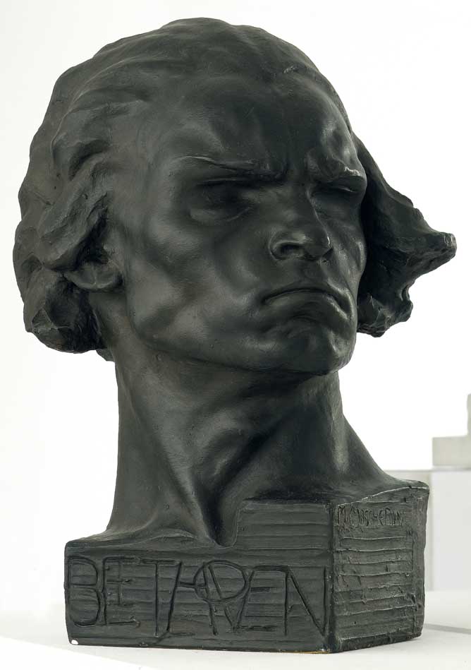 "Beethoven", entrato nelle collezioni museali nel 1991, documenta il periodo di formazione dell’artista. Ancora legato al gusto locale per quanto riguarda la ritrattistica, il giovane Mascherini prova a misurarsi anche con la tradizione iconografica importante, scegliendo un soggetto che ispirò prima di lui molti artisti. Il francese Emile Antoine Bourdelle, rimasto colpito dalla personale somiglianza con il genio romantico, realizzò un’ottantina di sculture raffiguranti il celebre compositore, come un musicista crea diverse variazioni su un tema. Il tedesco Max Klinger, invece, concepì il suo "Beethoven" come incarnazione del divino Zeus, nudo, con il pugno serrato e lo sguardo sollevato. Il marmo policromo, l’opera più celebre dello scultore tedesco, fu esposta in occasione della XIV Mostra della Wiener Sezession del 1902 assieme all’omonimo fregio di Gustav Klimt. Nel 1925 Mascherini presentò in diverse occasioni la sua versione in gesso, che aveva ipotizzato di intitolare "Genio della nona", raccogliendo i consensi della critica. Dieci anni più tardi Marino Marini dedicò il primo importante articolo allo scultore sulla rivista friulana «Panarie». Con un preciso e dettagliato elenco il critico passava in rassegna le opere più significative del giovane artista. Per il "Beethoven" Marini si soffermò sull’aspetto decorativo e così descrisse l’opera: «Il disegno è estroso, forma un bell’arabesco: appunto è un bell’arabesco decorativo e secessionista, ma non un ritratto, non certo scultura pura e semplice». Per le opere di questo genere il critico denunciava il forte debito di Mascherini nei confronti del coetaneo Franco Asco, presso il quale si era formato dal 1924 e grazie al quale si era avvicinato all’opera di un altro artista, Ivan Meštrović, noto in Italia dopo la presenza all’Esposizione dell’Arte Mondiale di Roma del 1911. Ma per la produzione di questi anni punto di riferimento per Mascherini fu anche Alfonso Canciani, suo maestro in età giovanile, aggiornato sulle tendenze della scultura tedesca come rivela il "Busto" di Richard Wagner, realizzato in più esemplari marmorei.