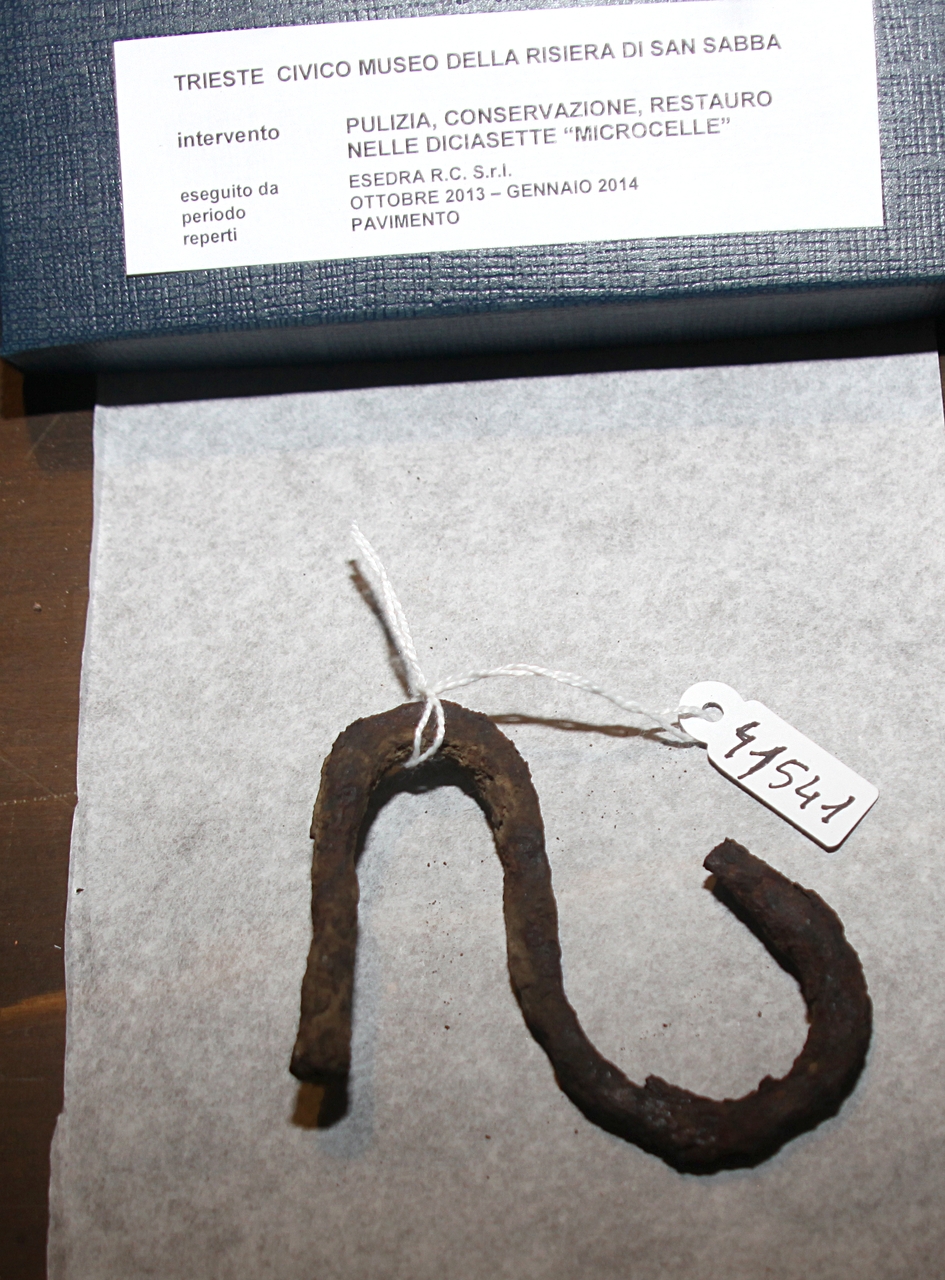 Fa parte di un nucleo di oggetti rinvenuti nel locale detto delle "microcelle" nel dicembre 2013 nel corso di un intervento di pulizia, conservazione e restauro.