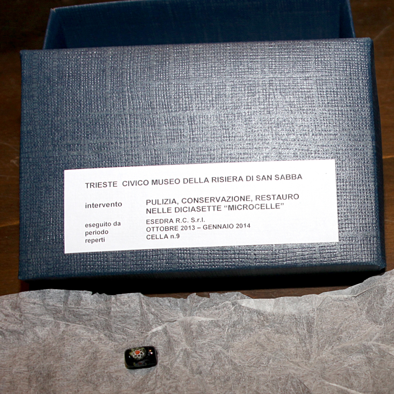 Fa parte di un nucleo di oggetti rinvenuti nella celletta numero 9 della Risiera di San Sabba nel dicembre 2013 nel corso di un intervento di pulizia, manutenzione e restauro.