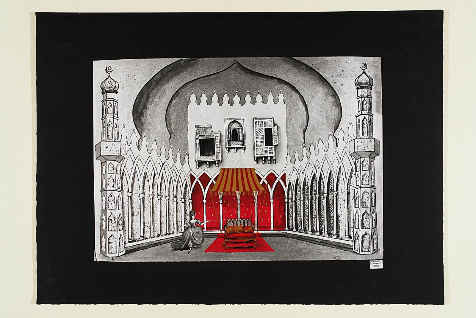 Bozzetto scenografico per Il Ratto dal serraglio, opera di Wolfgang Amadeus Mozart, prima rappresentazione 28 gennaio 1976, Teatro Comunale Giuseppe Verdi Trieste, regia di Filippo Crivelli