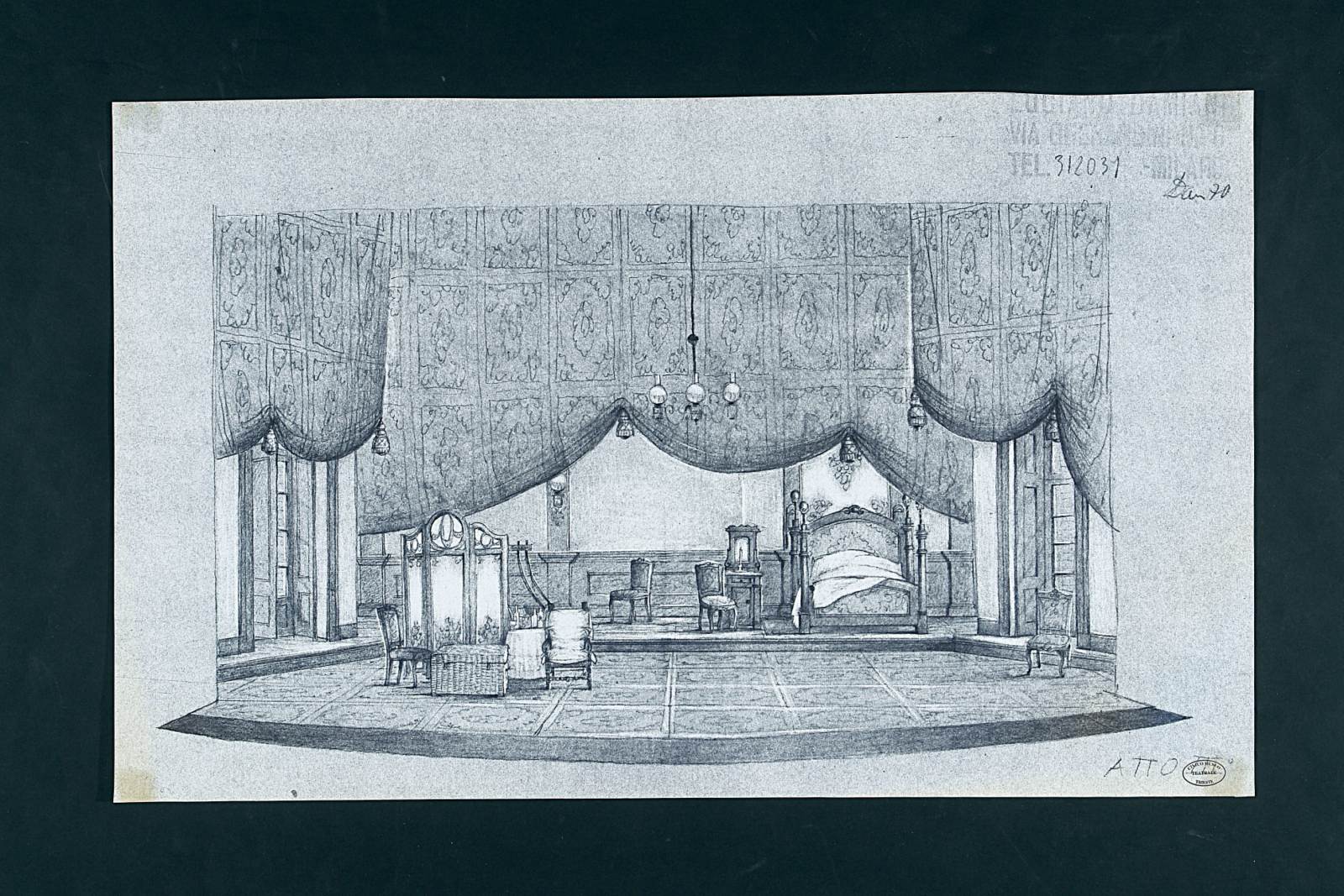 Scenografia per La traviata, opera in quattro atti di Giuseppe Verdi, Trieste, Teatro Verdi, stagione lirica 1970/1971. Regia e scene di Luciano Damiani