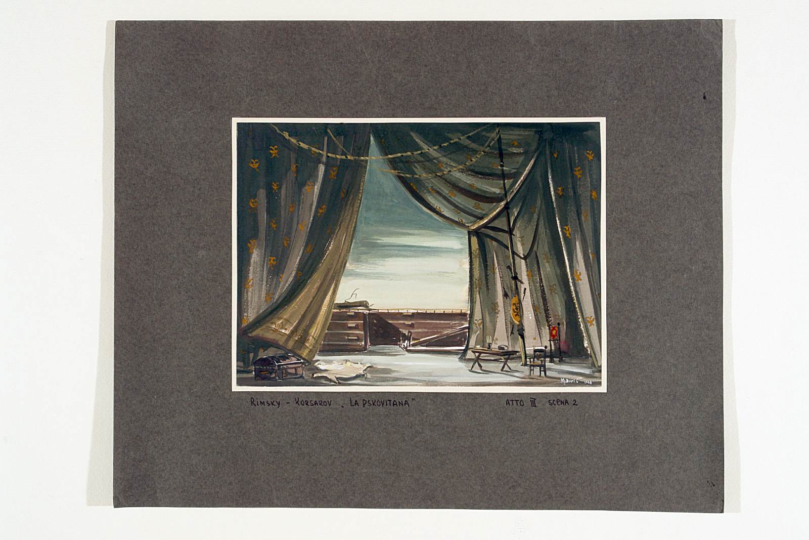 Bozzetto scenografico per Pskovitianka (Ivan il terribile), opera di Nikolaj Andreevič Rimskij-Korsakov, prima rappresentazione 13 gennaio 1968, Teatro Comunale Giuseppe Verdi Trieste, regia di Mladen Sablic
