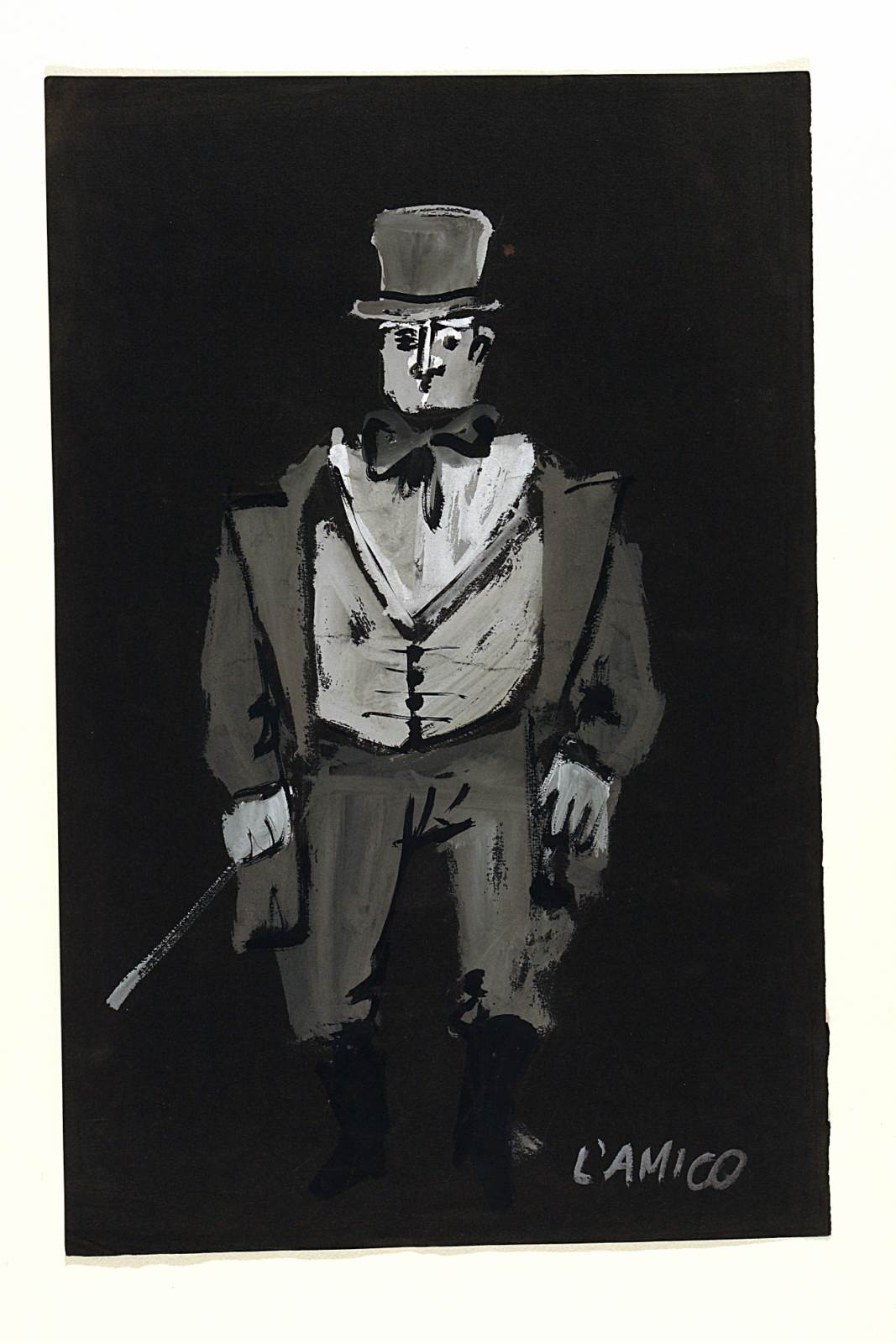 La leggenda di ognuno, testo teatrale di Hugo von Hofmannstahl. Personaggio: l'amico in abito grigio, panciotto, cravatta a fiocco, cilindro e bastone da passseggio