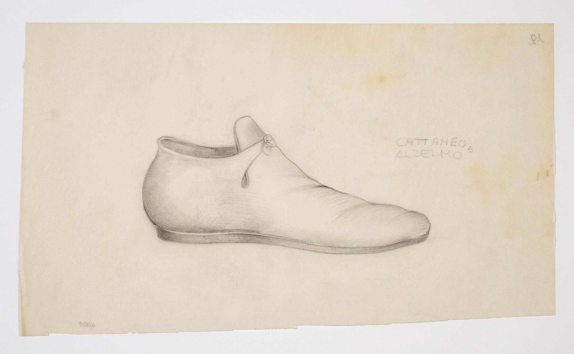 Il gioco dei potenti, libero adattamento di Giorgio Strehler da Enrico VI, dramma storico di William Shakespeare, in 15 atti e 2 giornate. Calzatura con lacci e tacco basso, di profilo verso destra.