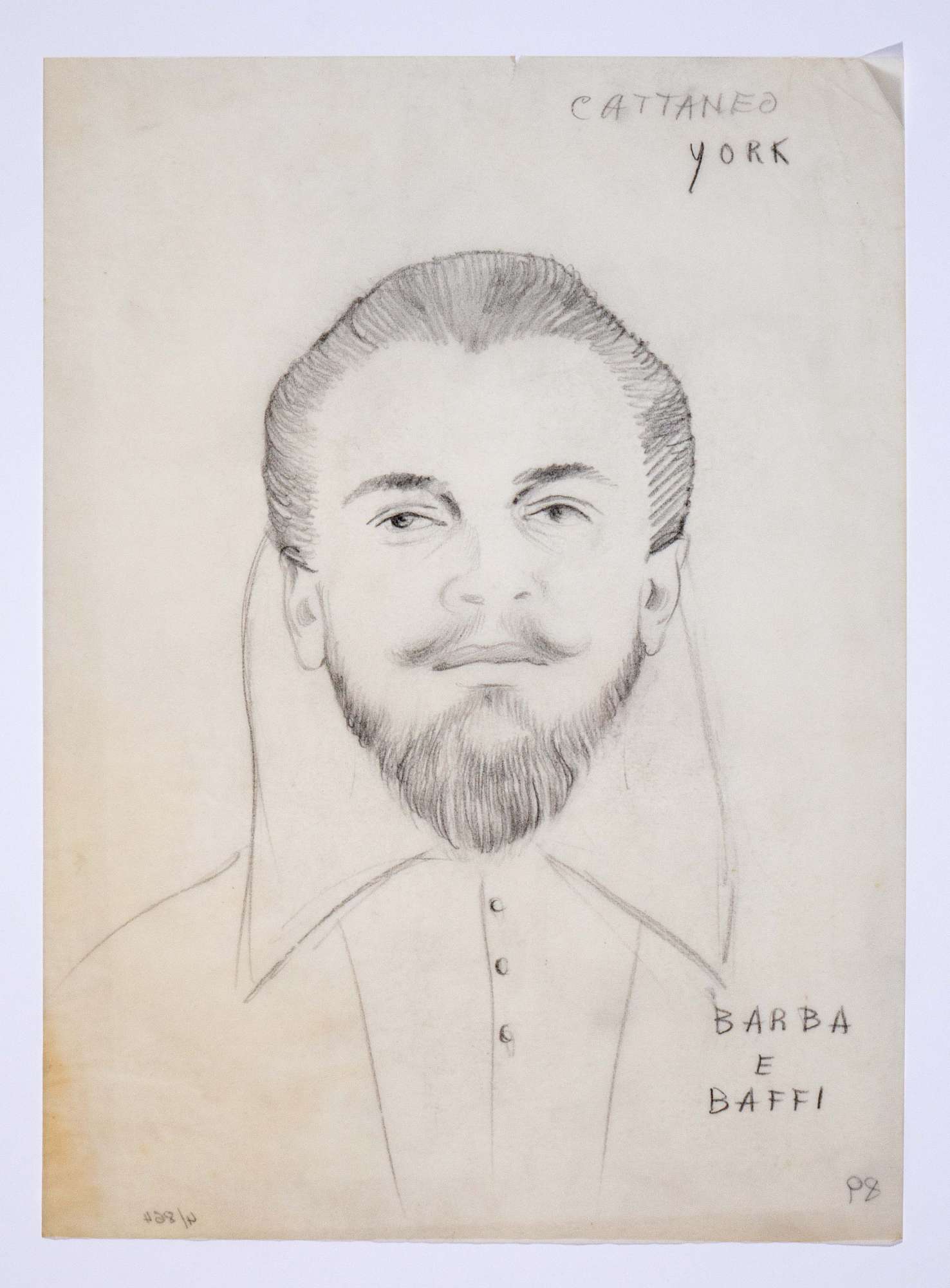 Il gioco dei potenti, libero adattamento di Giorgio Strehler da Enrico VI, dramma storico di William Shakespeare, in 15 atti e 2 giornate. Ritratto di testa maschile di fronte con testa scoperta, barba e baffi, colletto a punta rialzato sul retro.