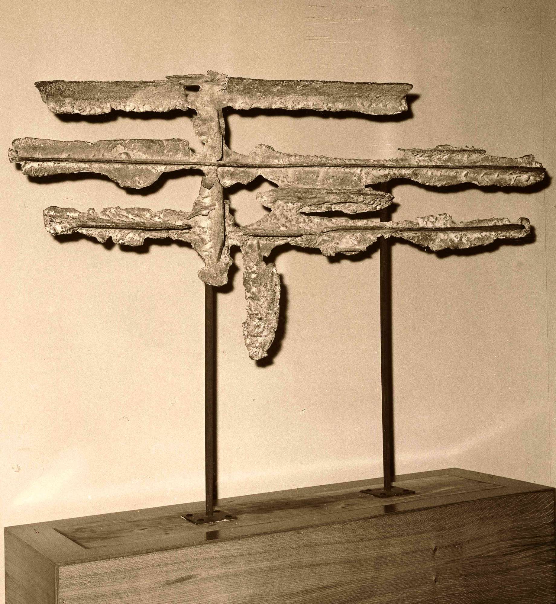 Il grande bronzo di Milani, firmato e datato 1959, è stato acquistato dal Museo Revoltella alla Biennale di Venezia del 1962. L’artista, presente alla rassegna internazionale con una sala personale, vi espone tredici opere del periodo 1953-62, che documentano la fase matura del suo linguaggio plastico. Se la produzione giovanile degli anni Venti e Trenta è vicina alle solidità volumetriche di Arturo Martini e di Mario Sironi, quella del secondo dopoguerra risente della plastica post-cubista e delle sperimentazioni spazialiste di Lucio Fontana, attraverso le quali l'artista approda ad esiti informali. L’intensa collaborazione degli anni Cinquanta con alcuni architetti operanti a Milano - come Luciano Baldessari, Marco Zanuso, Silvio Longhi e Carlo De Carli - lo porta a rileggere in chiave moderna la decorazione a rilievo come un mezzo per animare gli spazi architettonici. Nel novembre del 1954, in un’intervista radiofonica, Milani rivela: «Questa mia scultura è destinata alle pareti: anzi, ne fa parte […]. La scultura nuova, come la pittura, dovrebbe collaborare alle esigenze della nuova architettura, come del resto è sempre avvenuto, per i greci, per gli assirobabilonesi, per gli egizi e per la nostra arte romanica» ( cfr. Umberto Milani 1996, p. 111). Da questa ricerca ha origine la serie delle «plastiche parietali», realizzate a metà degli anni Cinquanta, a cui appartengono "Plastica orizzontale" (1957), realizzata come pavimento della XI Triennale di Milano, e le opere esposte alla biennale veneziana del 1958. Anche il bronzo "Piani orizzonali" del Revoltella ne è collegato, ma anticipa anche i lavori dei primi anni Sessanta: gli elementi costitutivi sono ancora superfici bidimensionali e scabre dai profili corrosi, conglomerati di materia e lamine di metallo che s’intersecano ortogonalmente, ma la loro disposizione, non è più disordinata, secondo un ritmo costantemente interrotto, ed esprime una ricerca di tridimensionalità, ordine ed equilibrio formale precedentemente assenti. I piani frontali hanno contorni indefiniti, come logorati naturalmente da un processo di ossidazione, mentre i piani trasversali si distinguono per il marcato rigore geometrico: un connubio di espressività istintiva e controllo razionale della forma, riscontrabile anche nelle sue opere pittoriche su carta e su tela.