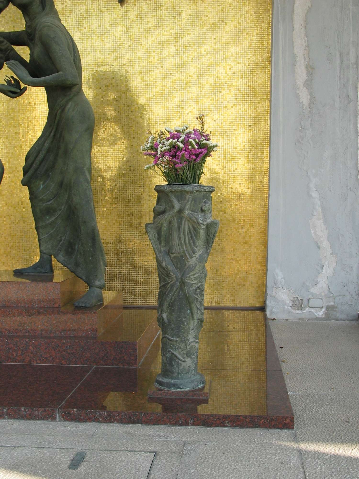 Su un basamento a tre gradini sono due figure femminili, la Fede e la Speranza, in atto di abbracciarsi; alle loro spalle, sulla sommità della dorata parete di fondo, sta un gruppo di angeli musicanti in volo. Sulla destra è posizionato un grande vaso decorato a rilievo con angeli di spalle nell'atto di sorreggere una ghirlanda.