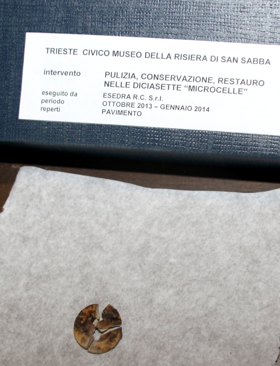 Fa parte di un nucleo di oggetti rinvenuti nel locale detto delle "microcelle" nel dicembre 2013 nel corso di un intervento di pulizia, conservazione e restauro.