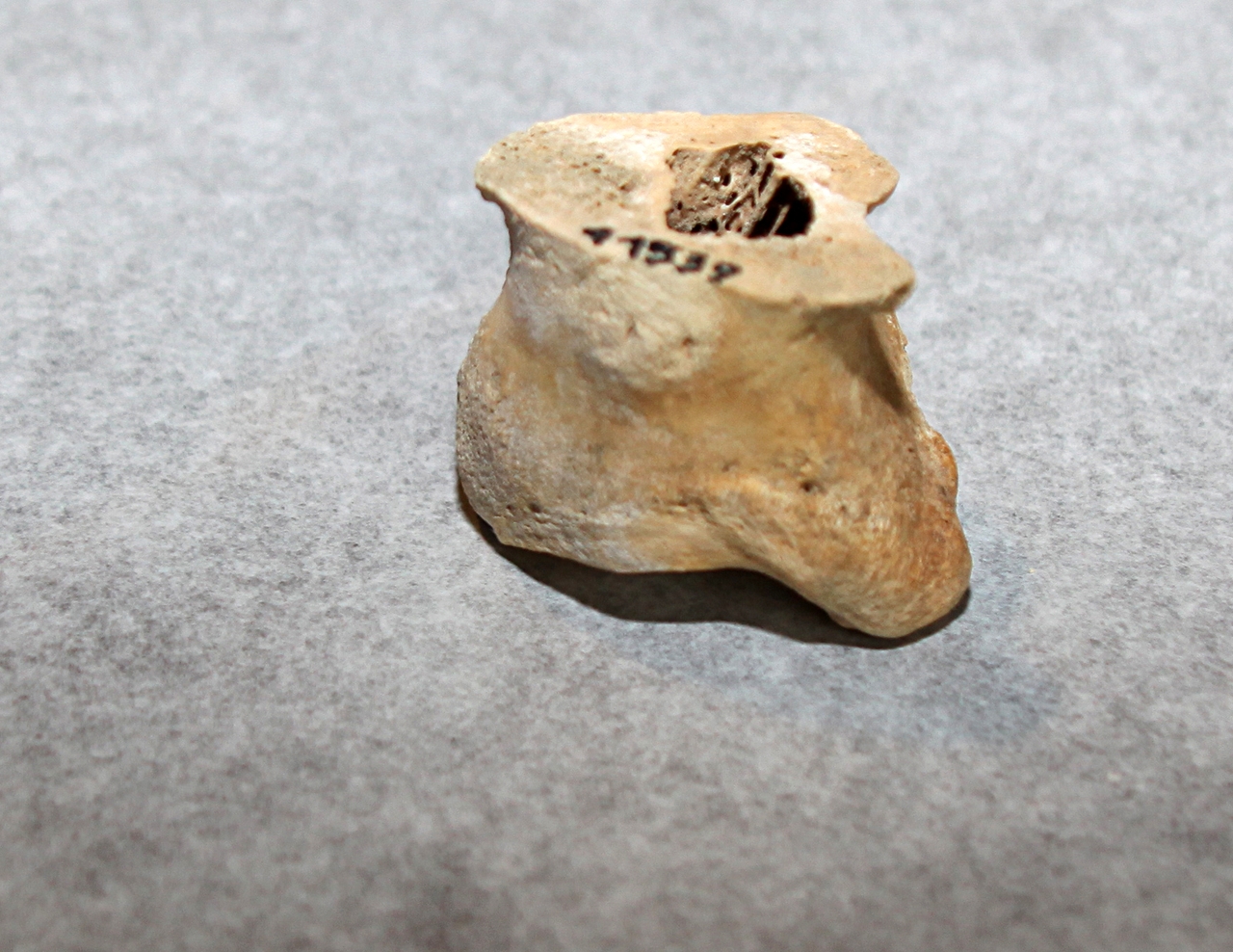 Fa parte di un nucleo di oggetti rinvenuti nelle cellette della Risiera di San Sabba. Questo ritrovamento risale al 13 novembre 2010, durante un lavoro di pulizia. Nell'ipotesi che potrebbe trattarsi di resti umani il reperto è stato fatto analizzare da un medico legale che con referto del 23 novembre 2010 ha ritenuto plausibile trattarsi di falange di bovino.