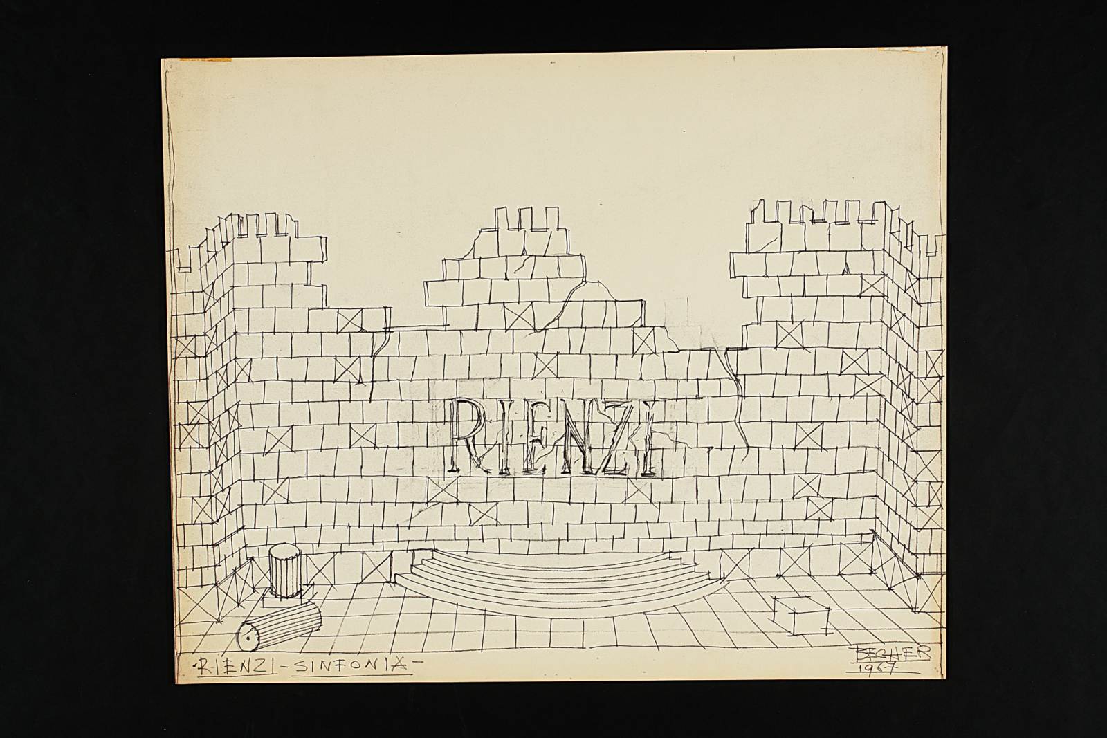 Scenografia per Rienzi, l'ultimo dei tribuni di Richard Wagner, Trieste, Teatro Verdi, stagione lirica 1967-1968, regia scene e costumi di Gianrico Becher