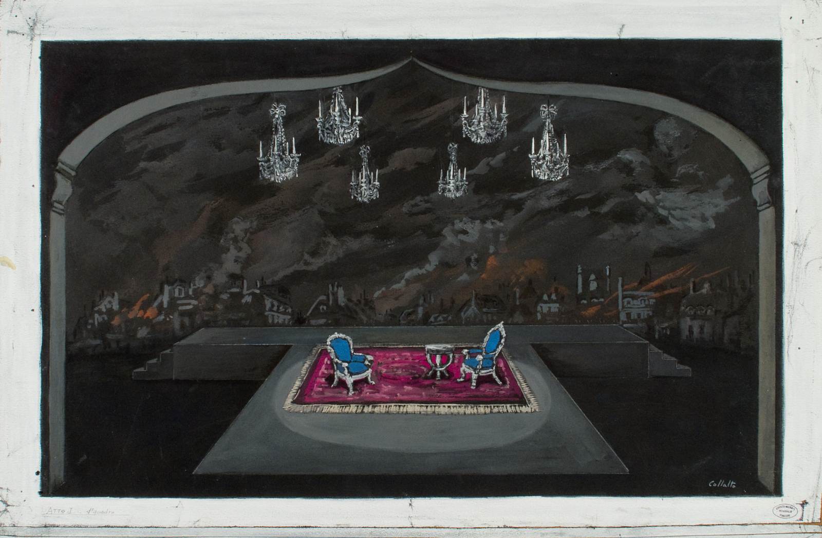 Bozzetto scenografico per I dialoghi delle carmelitane, opera di Francis Poulenc, prima rappresentazione 23 novembre 1957, Teatro Comunale Giuseppe Verdi Trieste, regia di Franco Enriquez