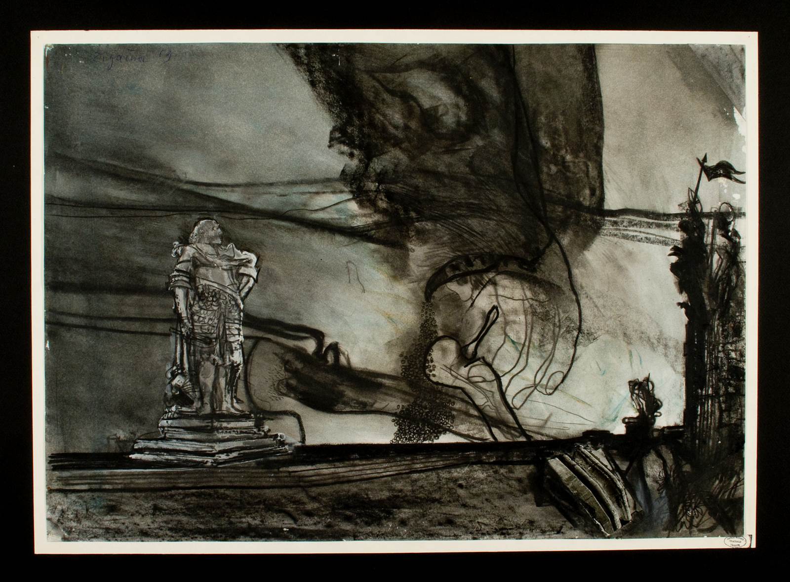 Bozzetto scenografico per Il convitato di pietra, opera di Aleksandr Sergeevič Dargomyžskij, prima rappresentazione 6 marzo 1969, nuova per Trieste, Teatro Comunale Giuseppe Verdi Trieste, regia di Carlo Piccinato