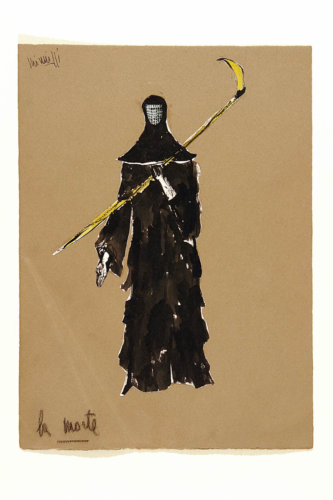 L'anno della peste, sacra rappresentazione su testi medievali raccolti da Sergio Miniussi. La morte, figura intera in abito nero lungo coperto da cappuccio, volto coperto da retina, la mano sinistra sorregge una falce
