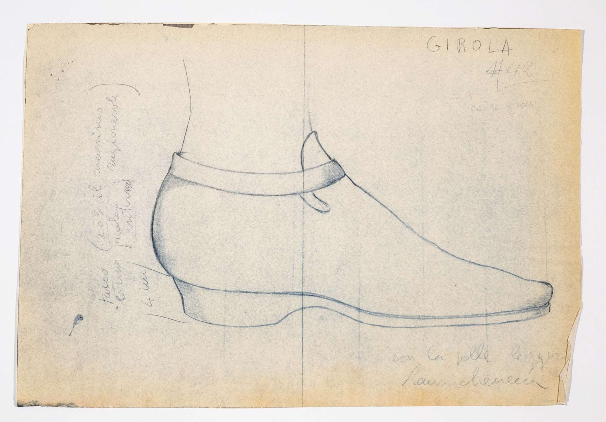 Il gioco dei potenti, libero adattamento di Giorgio Strehler da Enrico VI, dramma storico di William Shakespeare, in 15 atti e 2 giornate. Calzatura con tacco basso e punta larga, di profilo verso destra.