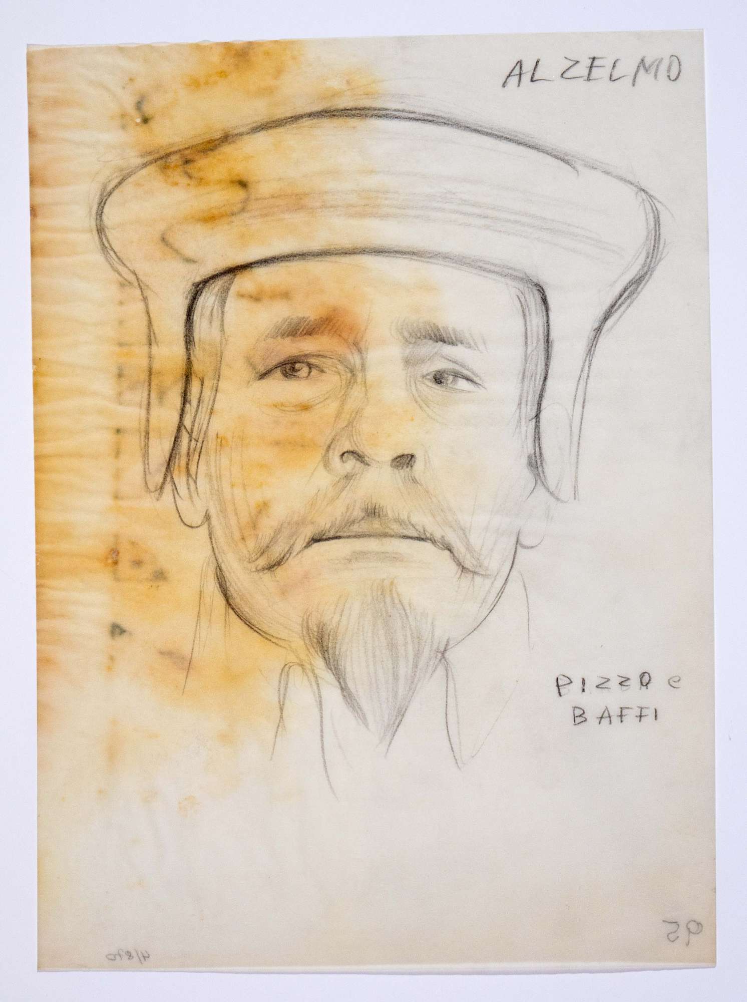 Il gioco dei potenti, libero adattamento di Giorgio Strehler da Enrico VI, dramma storico di William Shakespeare, in 15 atti e 2 giornate. Ritratto di testa maschile di fronte con copricapo, barba a pizzetto e baffi.