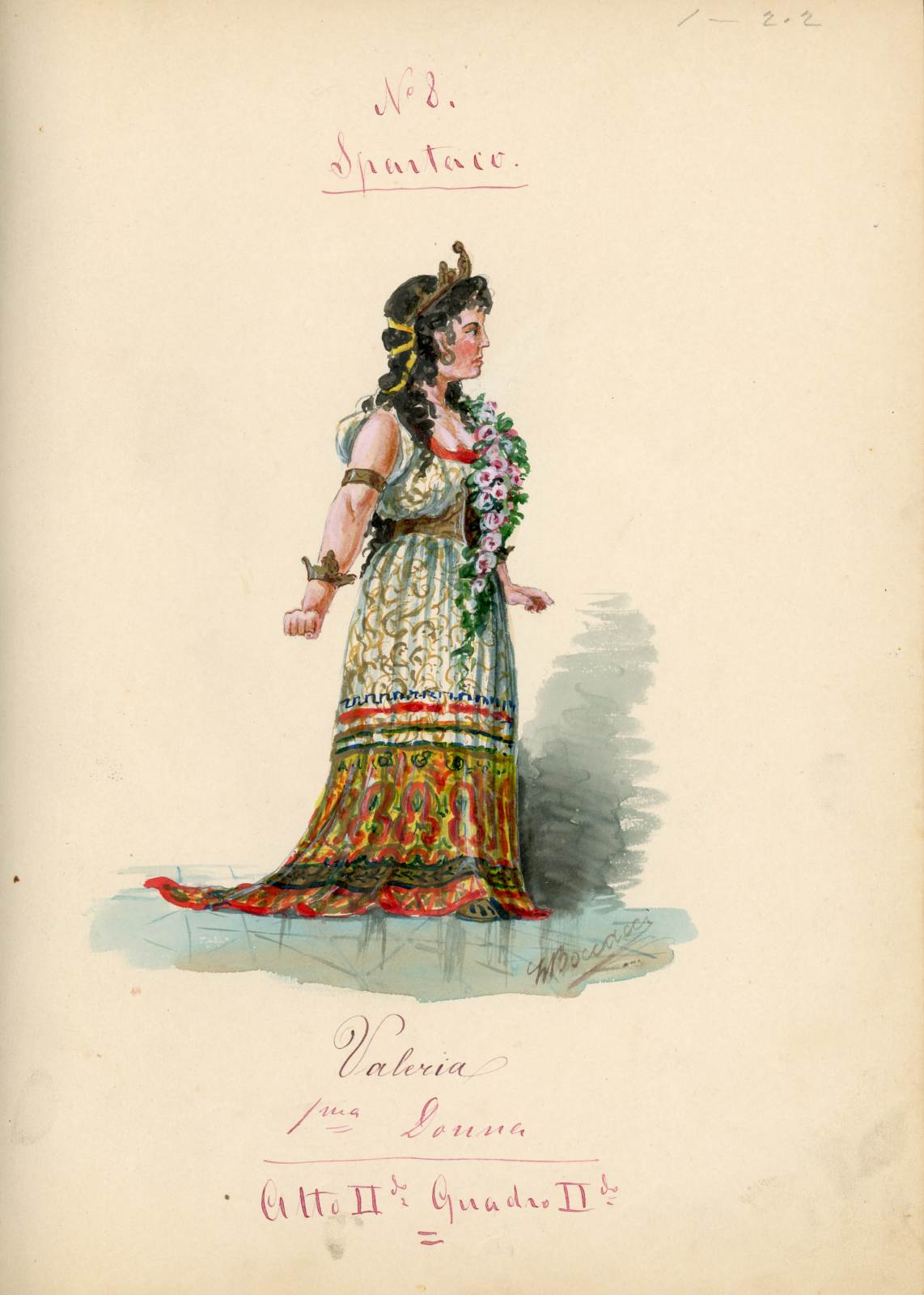 Spartaco, opera di Giuseppe Sinico. Figurino per il personaggio di Valeria Messala