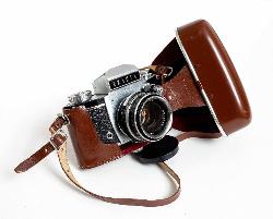 Apparecchio fotografico compatto a sviluppo orizzontale, in metallo ricoperto in pelle nera. E' costituito da un corpo centrale che funge da camera oscura sul quale è inserito un mirino a pozzetto con paraluce in metallo apribile.All'interno del corpo centrale è inserito lo specchio inclinato a 45° che riflette l'immagine proveniente dall'obiettivo sul vetro smerigliato posto nel mirino. L'ottica è inserita sulla parte frontale del corpo centrale e sul suo piano focale si trova l'otturatore a tendina. All'interno dell'obiettivo si trova un diaframma a iride. L'obiettivo è a messa fuoco variabile direttamente agendo su una ghiera posta sull'obiettivo stesso. Il pulsante di scatto è in posizione frontale sul lato