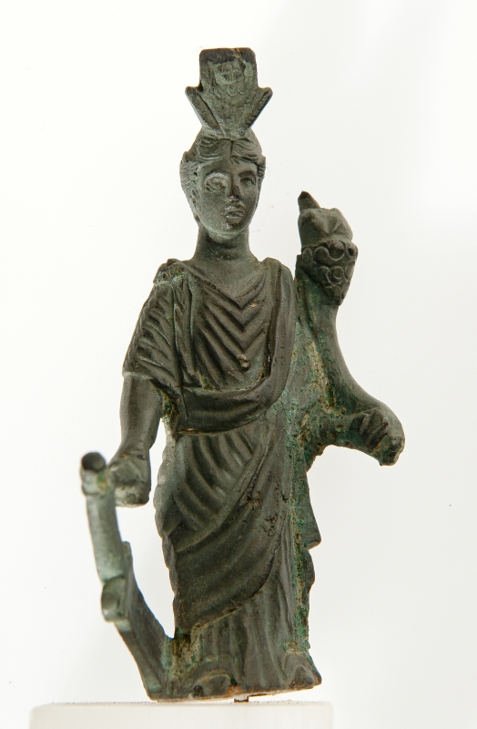 Figura stante che si poggia sulla gamba destra: indossa un lungo chitone fermato alla spalla destra da una fibula quadrilobata, con maniche fino al gomito, e ampio himation drappeggiato. In testa porta l'acconciatura isiaca con corna sorreggenti il disco solare sormontato dalle due piume, posto su un modio. Sostiene con la mano destra un timone e con la sinistra, aderente al fianco un corno dell'abbondanza. Viene proposta un'attribuzione a bottega di Industria.