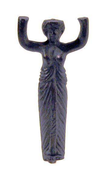 Bronzetto raffigurante donna stante a braccia alzate, Falso