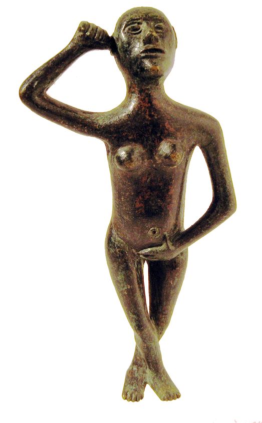 Figurina di donna nuda, in atteggiamento di Venere pudica. Testa ovale, leggermente sollevata. Il corpo è disarticolato e sproporzionato. Dato per falso.