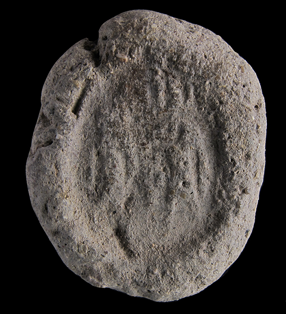 Impronta di un sigillo in argilla che raffigura due figure divine, di cui una con corona atef.