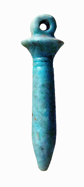 Amuleto in faience lavorato a tutto tondo e raffigurante un giovane stelo cilindrico di papiro con la base appuntita e con in cima la sua tipica infiorescenza a ombrello; al di sopra vi è la consueta presa forata per la sospensione. Normalmente, lo stelo di papiro così raffigurato è tenuto in mano come scettro dalle divinità femminili. Di colore verde o azzurro chiaro, allude alla gioventù e alla rinascita della vegetazione, rinascita che i defunti speravano di sperimentare nell'aldilà.