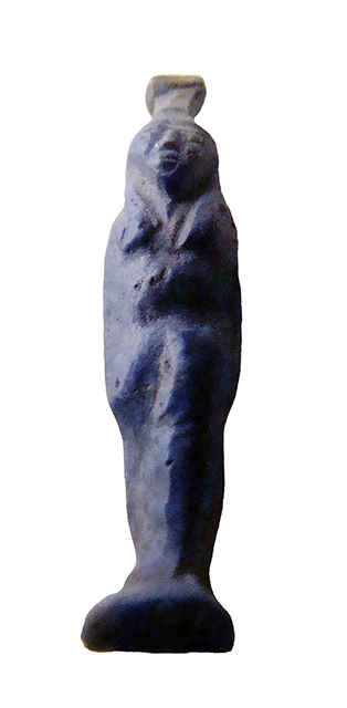 Amuleto in lapislazzulo raffigurante Nefti con pilastro dorsale forato, dall'Egitto