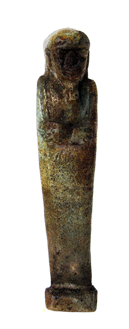 Statuina funeraria mummiforme, con parrucca tripartita, corta barba divina, mani incrociate ed affiancate che reggono attrezzi non identificabili. C'è la base sotto i piedi ma non il pilastro dorsale: il retro è infatti piatto. L'ushabti è anepigrafe, e le caratteristiche fisiche, assieme ai tratti del viso, sono insolitamente squadrati.
