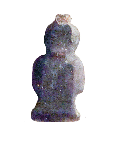 Amuleto in steatite lavorato a tutto tondo, con presa superiore forata, che raffigura la silouhette del nodo Tit, simbolo della dea Iside. Raffigura un panno piegato e annodato in maniera particolare; tale amuleto, di colore generalmente rosso, doveva proteggere i defunti e quindi veniva messo al collo delle mummie il giorno dei funerali.