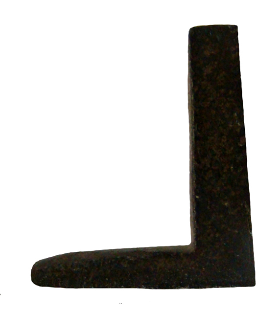 Amuleto bidimensionale in pietra, raffigurante una squadra da carpentiere. Un amuleto a forma di squadra, così come quello a forma di filo a piombo, garantiva rettitudine e onestà.