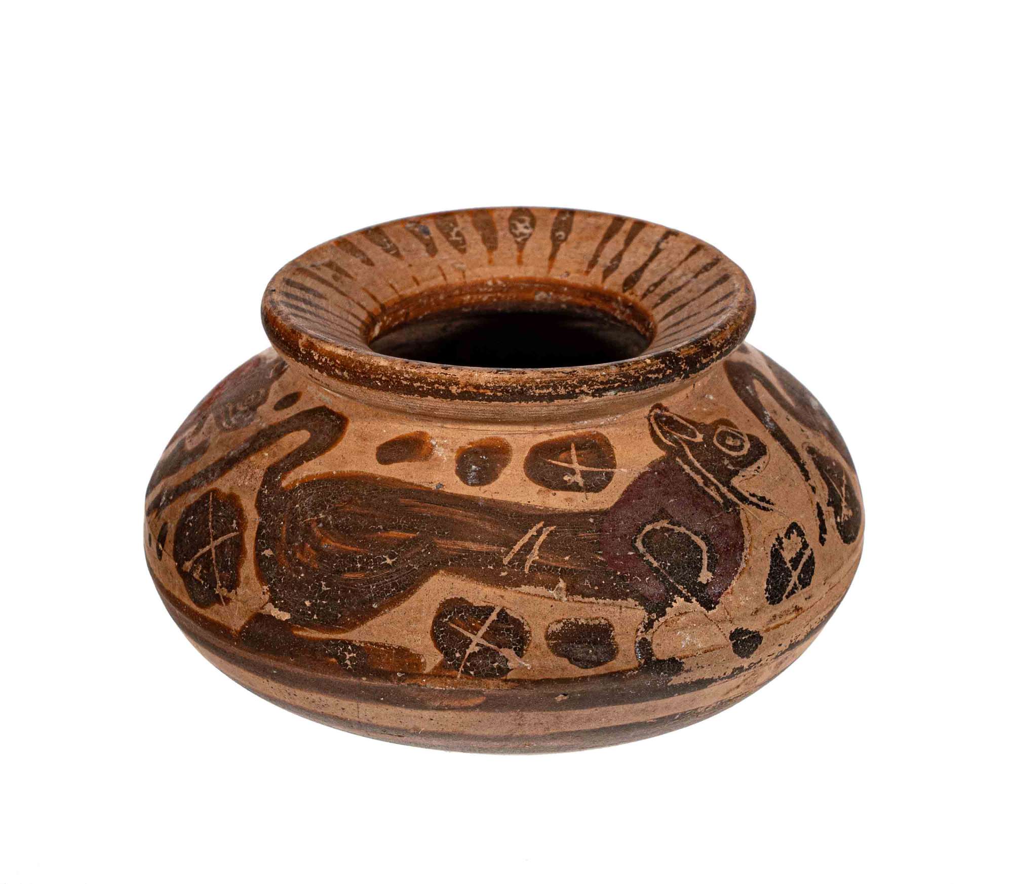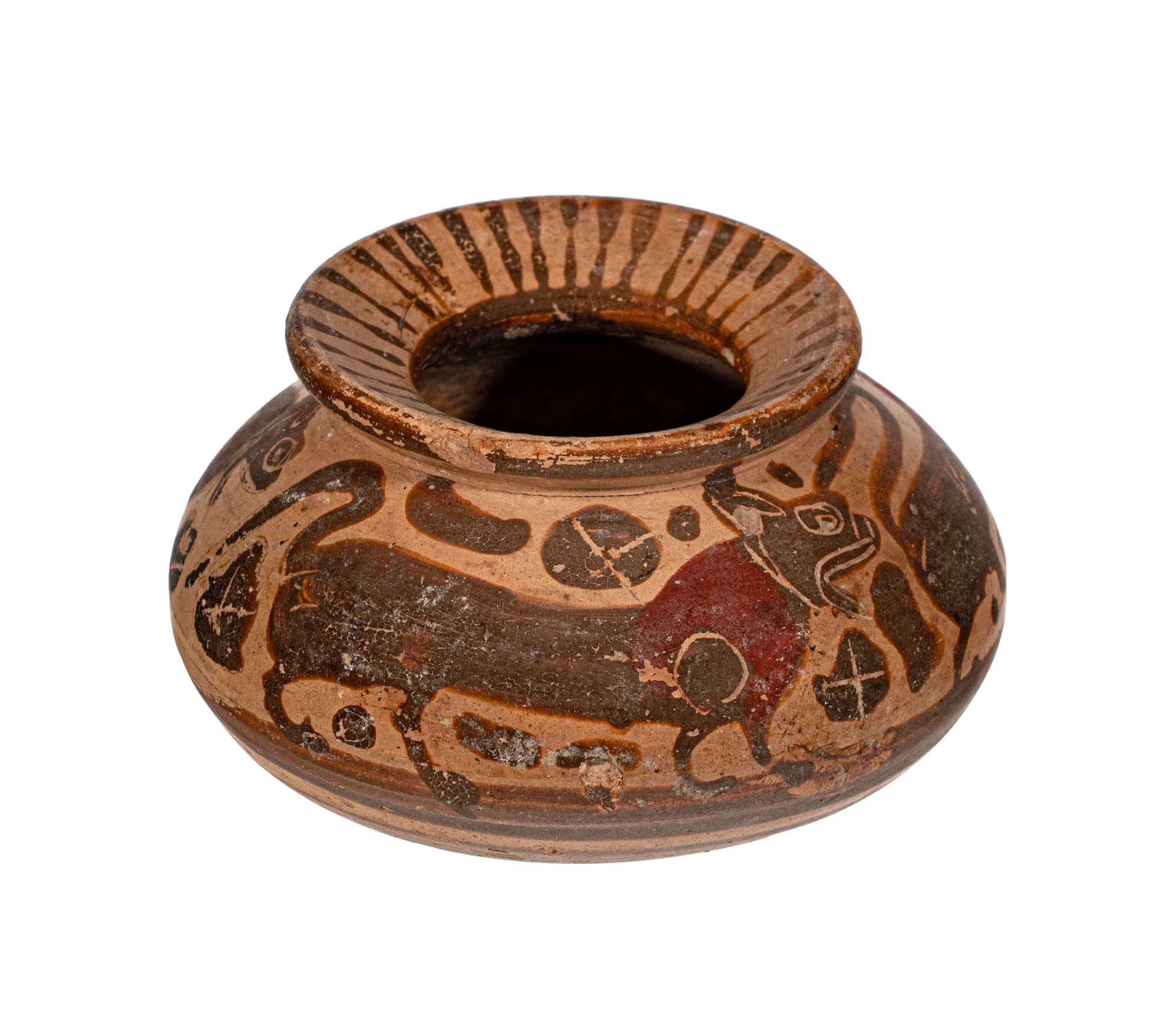 Pisside corinzia con toro, leoni e un lupo verso destra.