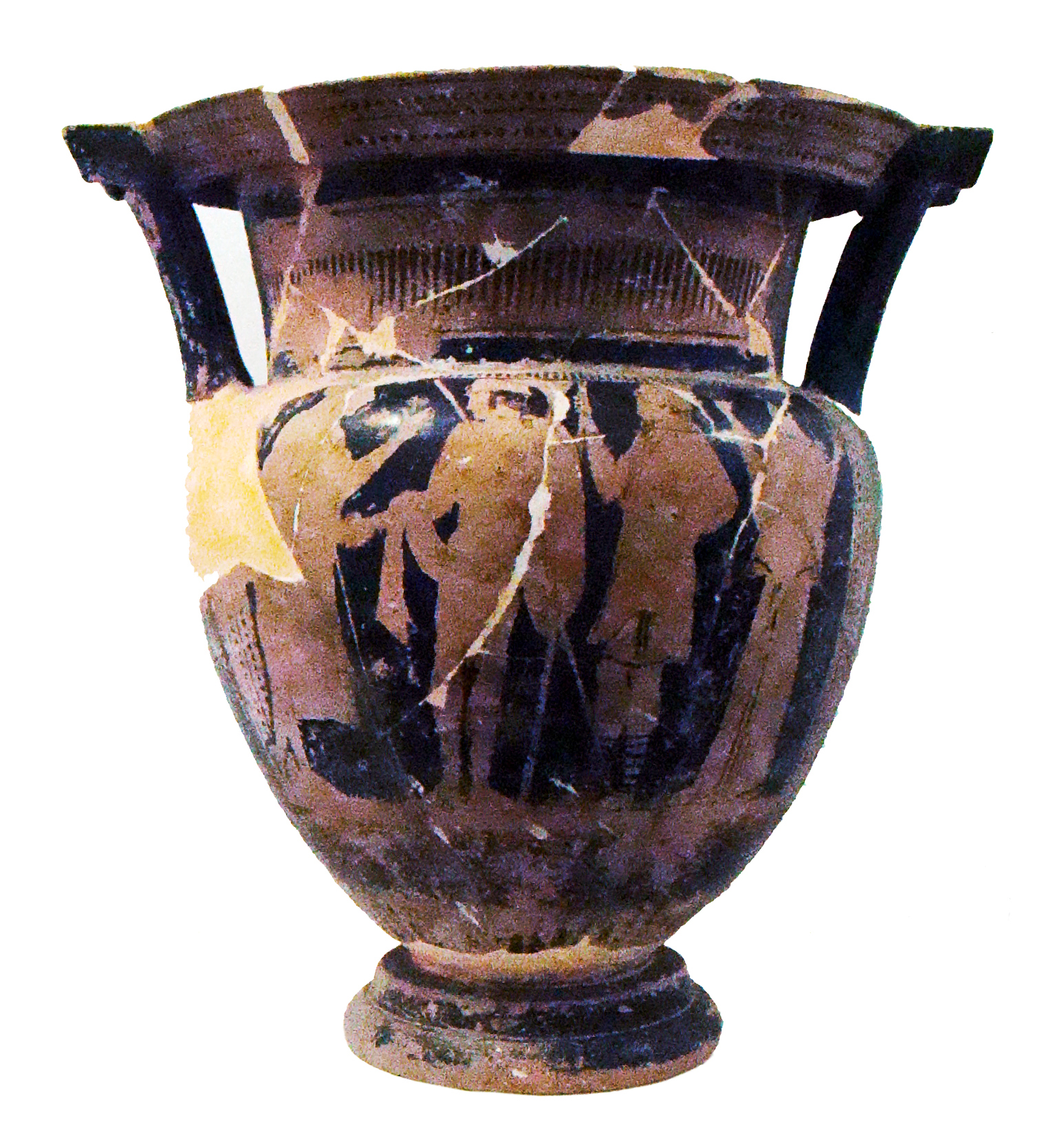 Il cratere già considerato come prodotto apulo tardo è stato riconosciuto dalla Bellinato come produzione attica avvicinabile al Grppo di Polignoto.