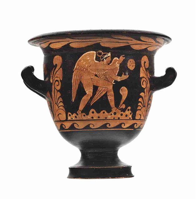 Cratere a campana campano a figure rosse Lato A: figura femminile stante; Lato B: erote nudo