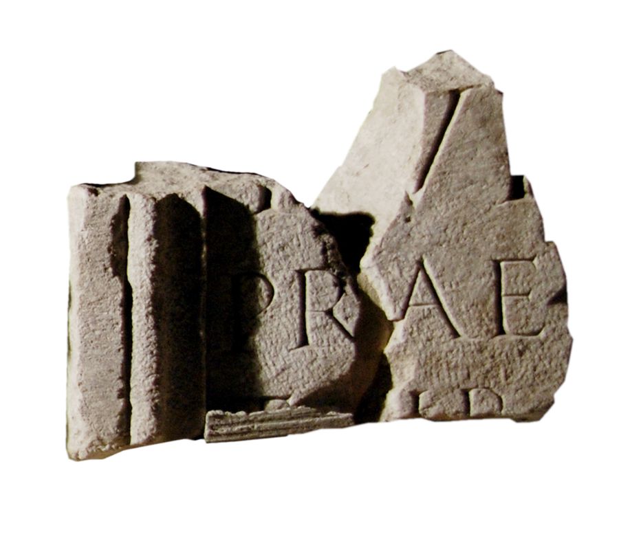 Due frammenti tra loro non congiunti, appartenenti al basamento di statua di Q. Baienus Bassianus, costituito da un dado incorniciato su tre lati con fronte modanata ed iscritta.
