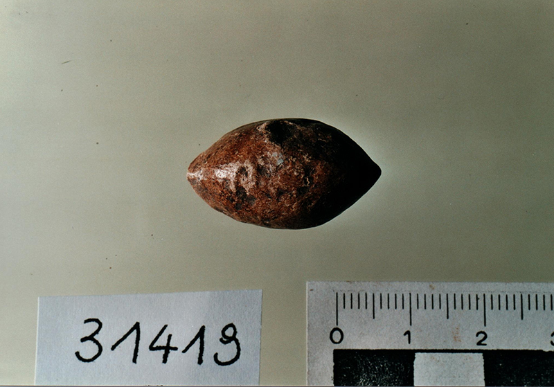 Ghianda anepigrafe, tipo Ic, forma ovoidale con ossidazione ferrosa.