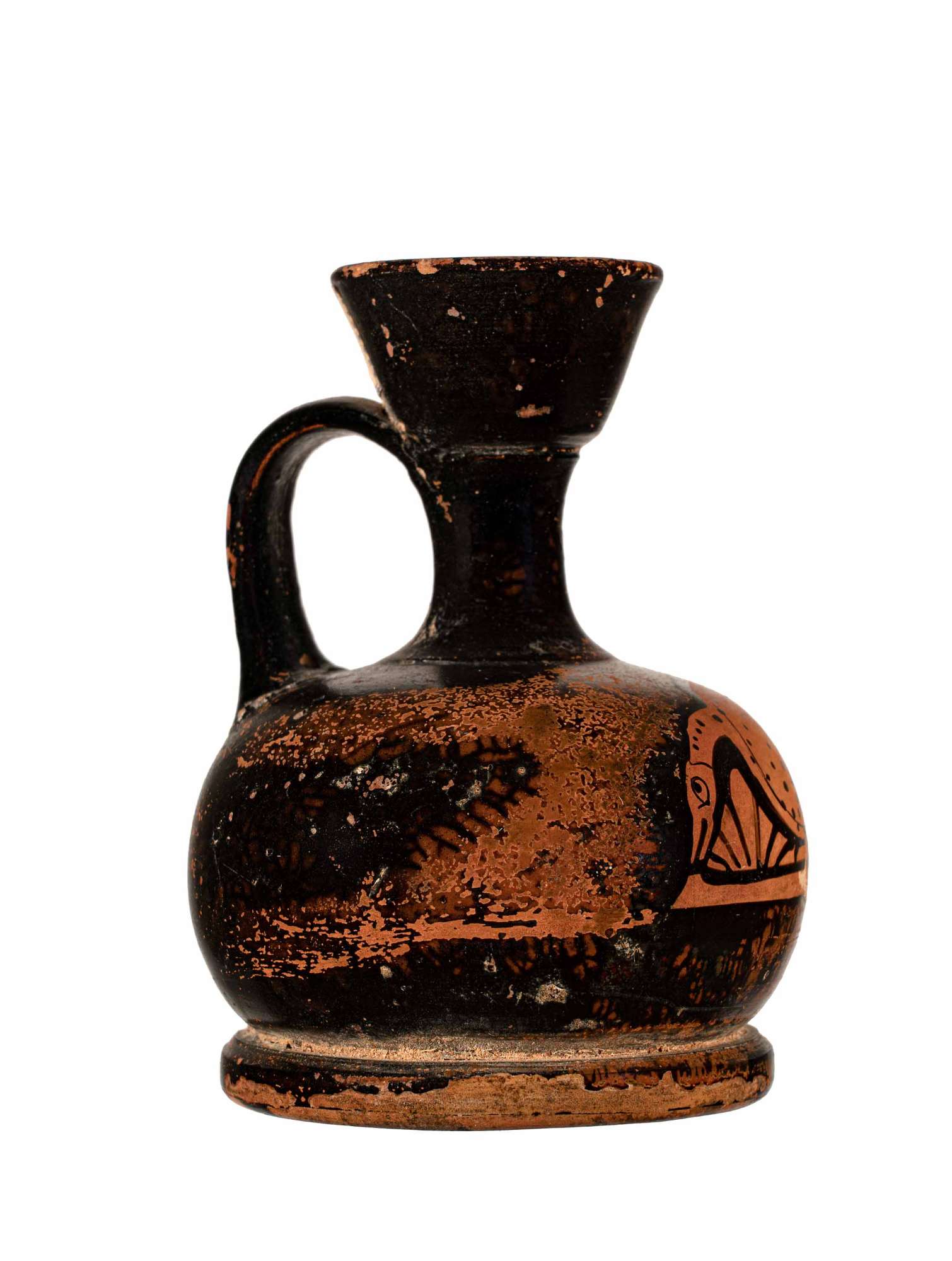 Lekythos aryballica attica a figure rosse a ventre globulare e base piatta con cigno.