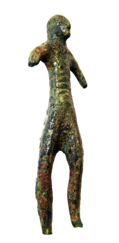 Figurina di uomo schematica e allungata, tratti fisionomici sommari, di tipo veneto.