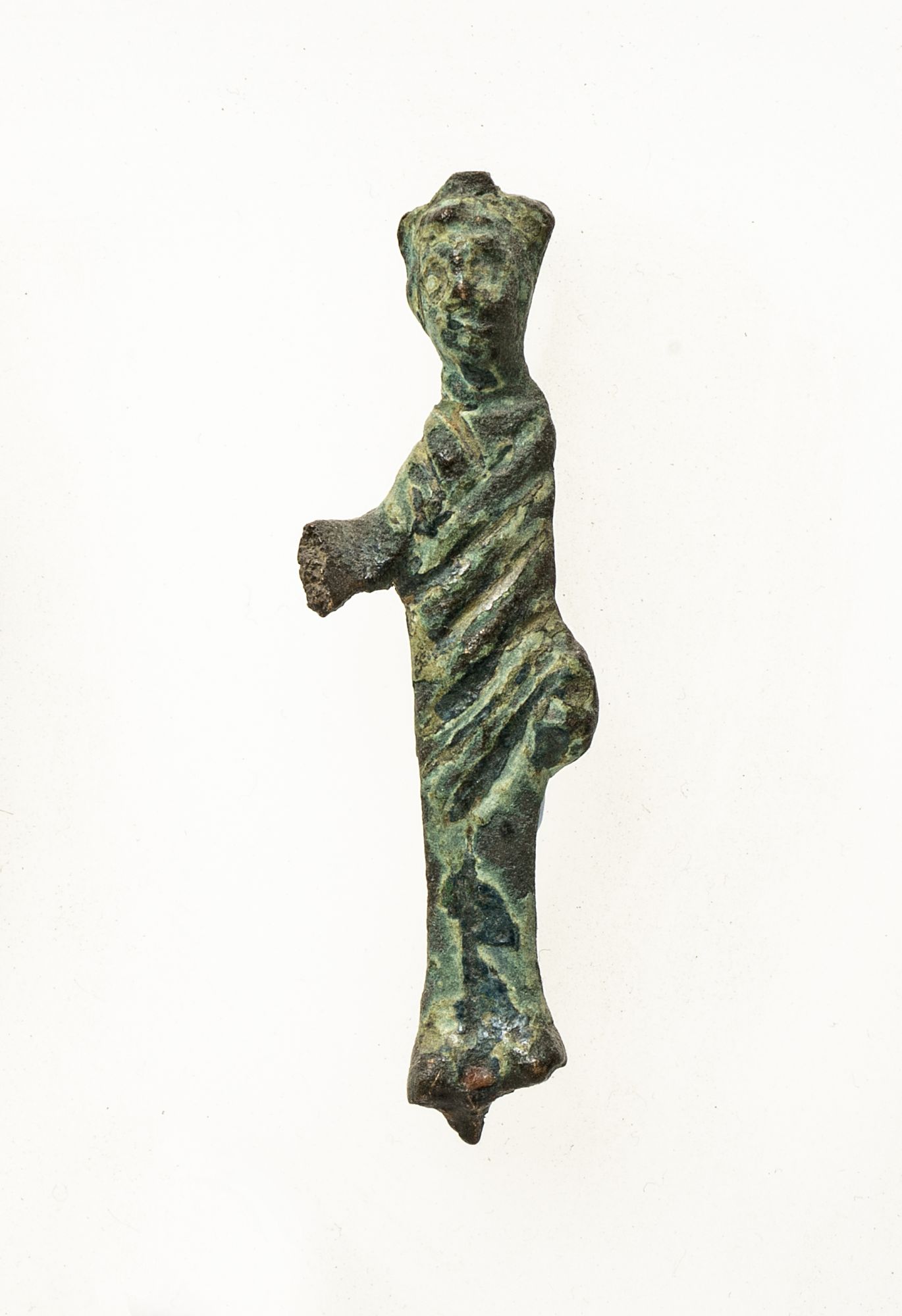 Buono; Manca la mano destra e l'attributo. Patina verde-azzurra