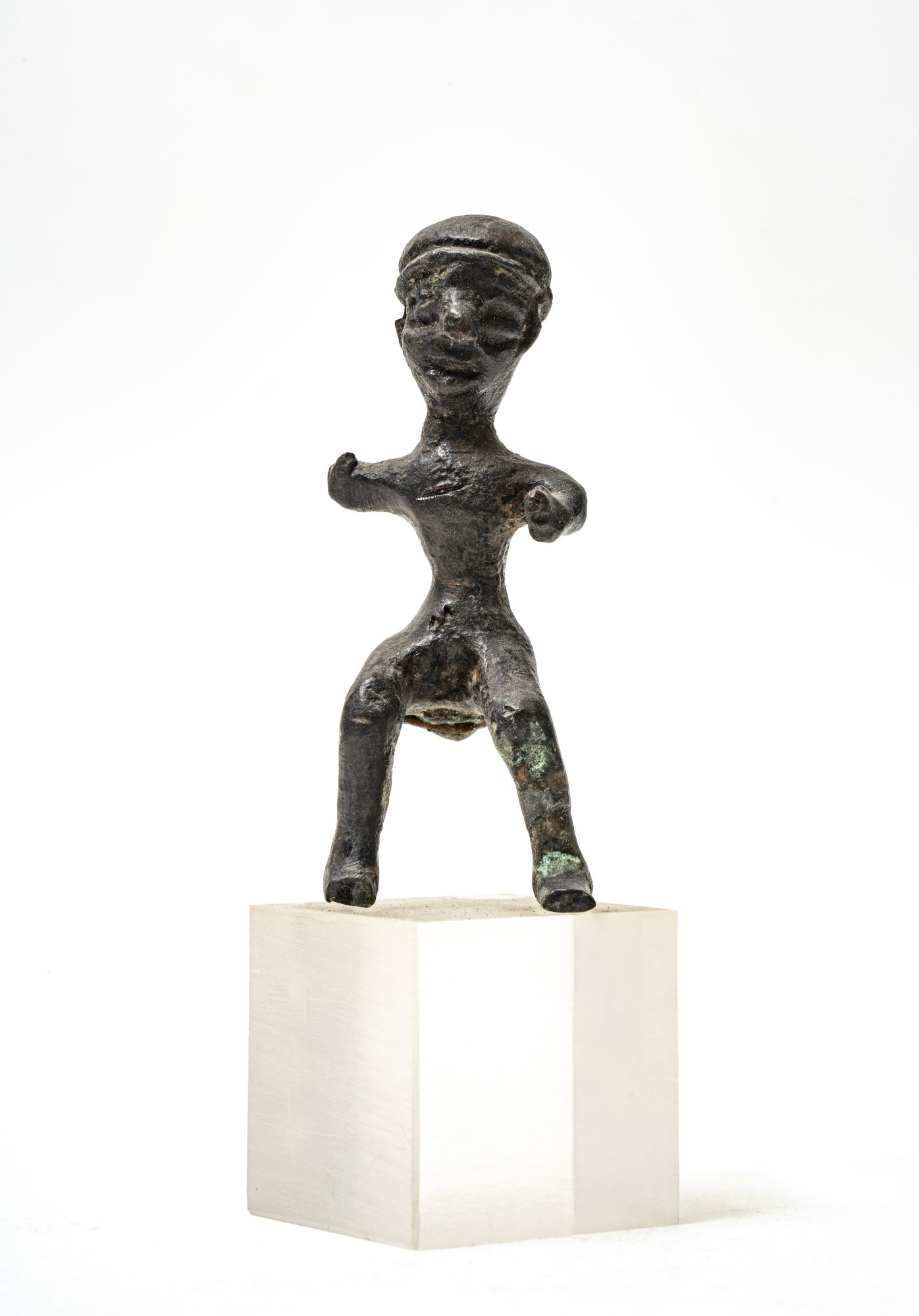 Buono; Spezzati l'avambraccio destro e le punte dei piedi. Patina bruno-scura.