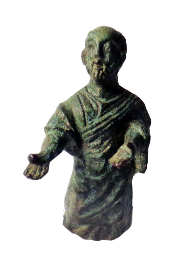 Bronzetto raffigurante vecchio togato e barbato, provenienza ignota