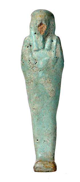 Usciabti anepigrafe in faience, di Epoca Tarda, inv. 39240; Statuetta funeraria mummiforme, dall'Egitto